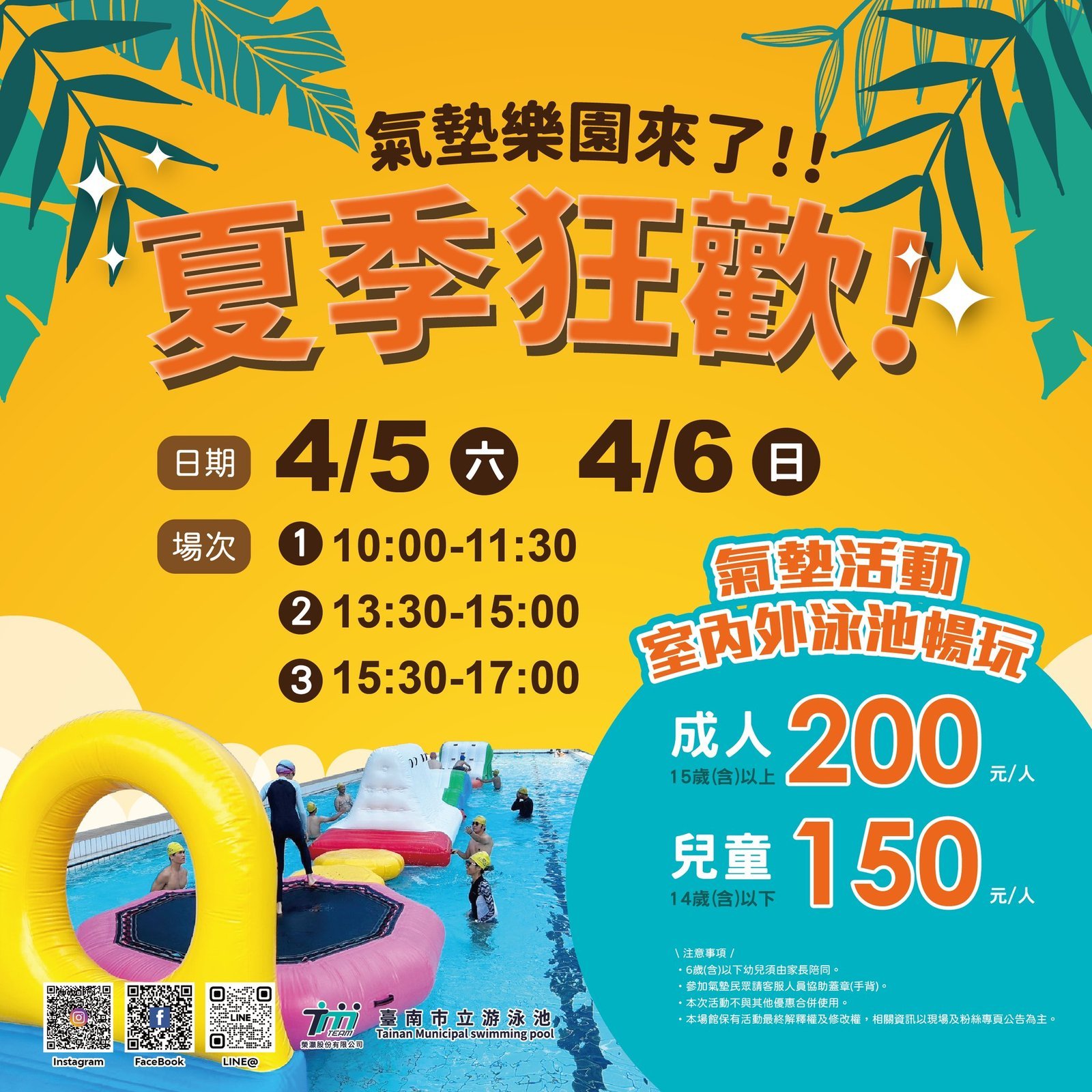 【透傳媒記者杜忠聰/臺南報導】歡慶兒童節!永華國民運動中心將於4月5日舉辦兒童節划船趣味活動,臺南市立游泳池也於4月5日至6日推出「氣墊樂園」,邀請家長與孩子們一同來暢玩,探索充滿驚喜和歡笑的水上休閒時光。