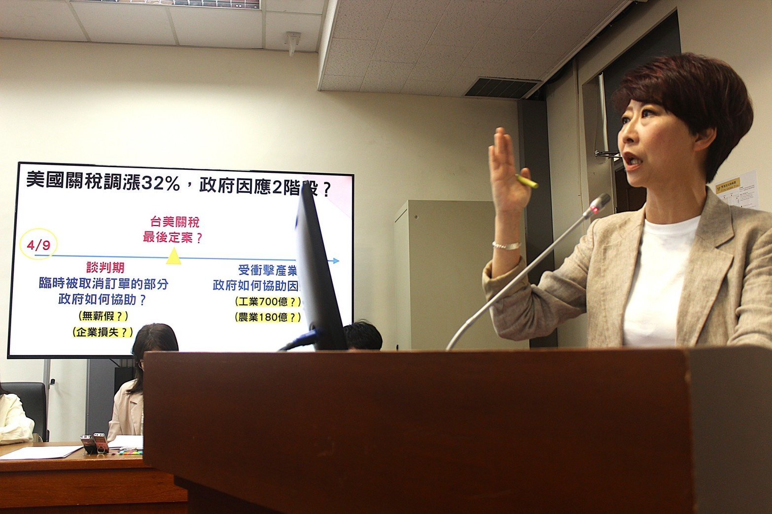 【透傳媒記者杜忠聰/臺南報導】美國對台灣多項出口產品課徵高達32%的高額關稅,引發台灣產業界高度關注,民進黨立委陳亭妃9日在立法院質詢經濟部長郭智輝時指出,政府應清楚區分「短期談判期訂單取消衝擊期」與「關稅定案後的長期產業衝擊期」,給予最適當的協助方案,才能真正穩定整個經濟發展的信心。尤其現階段的過渡期「訂單取消、斷現金流、員工放無薪假」才是第一線企業最痛苦的現實。