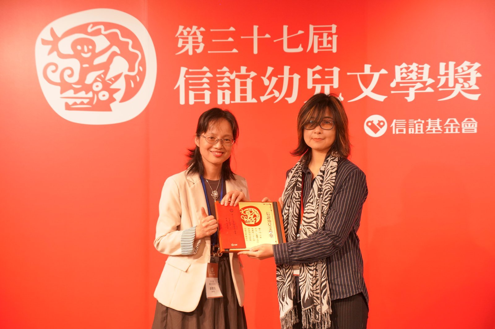 文化部長李遠、教育部終身教育司顏寶月副司長、立法委員陳培瑜、教育電台黃月麗台長、前國家圖書館曾淑賢館長,以及近百位兒童文學界貴賓參與盛會,李遠部長頒獎致詞時,特別感謝信誼,強調能堅持37年實在非常不容易,當場承諾未來要用政府的力量支持繪本創作。