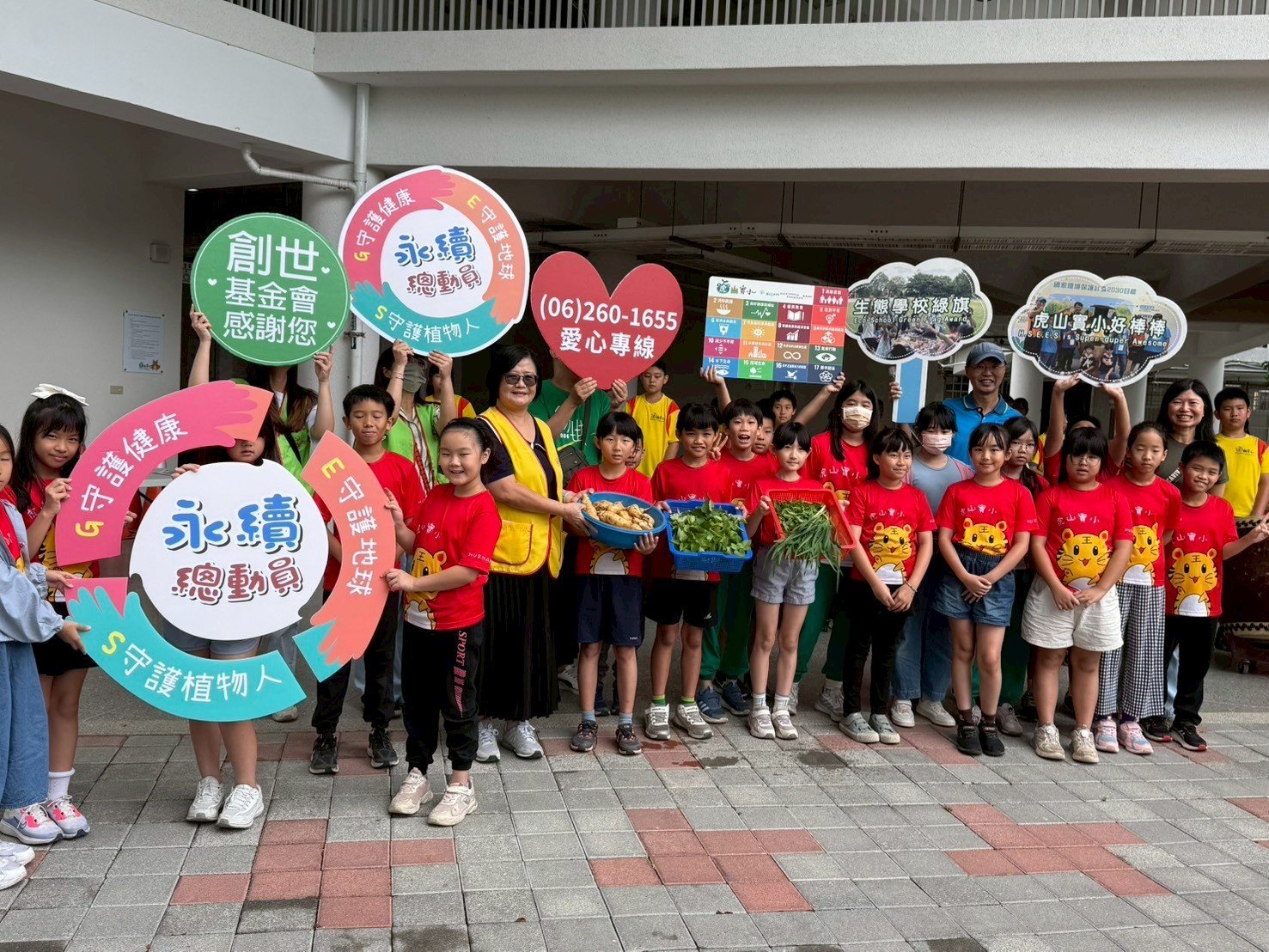 【透傳媒記者杜忠聰/臺南報導】獲得國際認證「永久綠旗」的臺南市虎山實小,孩子開心農場裡用心種植的蔬菜承載著無限的祝福,這些愛的食材將捐贈給創世基金會,成為植物人的餐食。在林勇成校長和老師們的帶領下,這份愛心為需要幫助的家庭送上了一份溫暖。