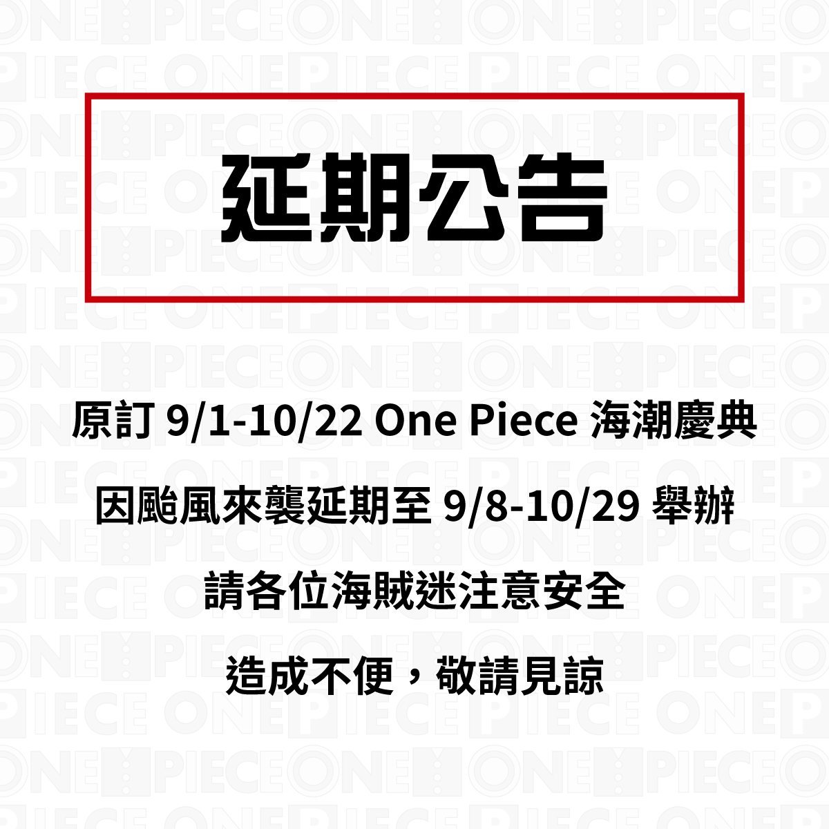 「One Piece海潮慶典-航向偉大的臺南吧」航海王活動 因應颱風 將延至9月8日開展