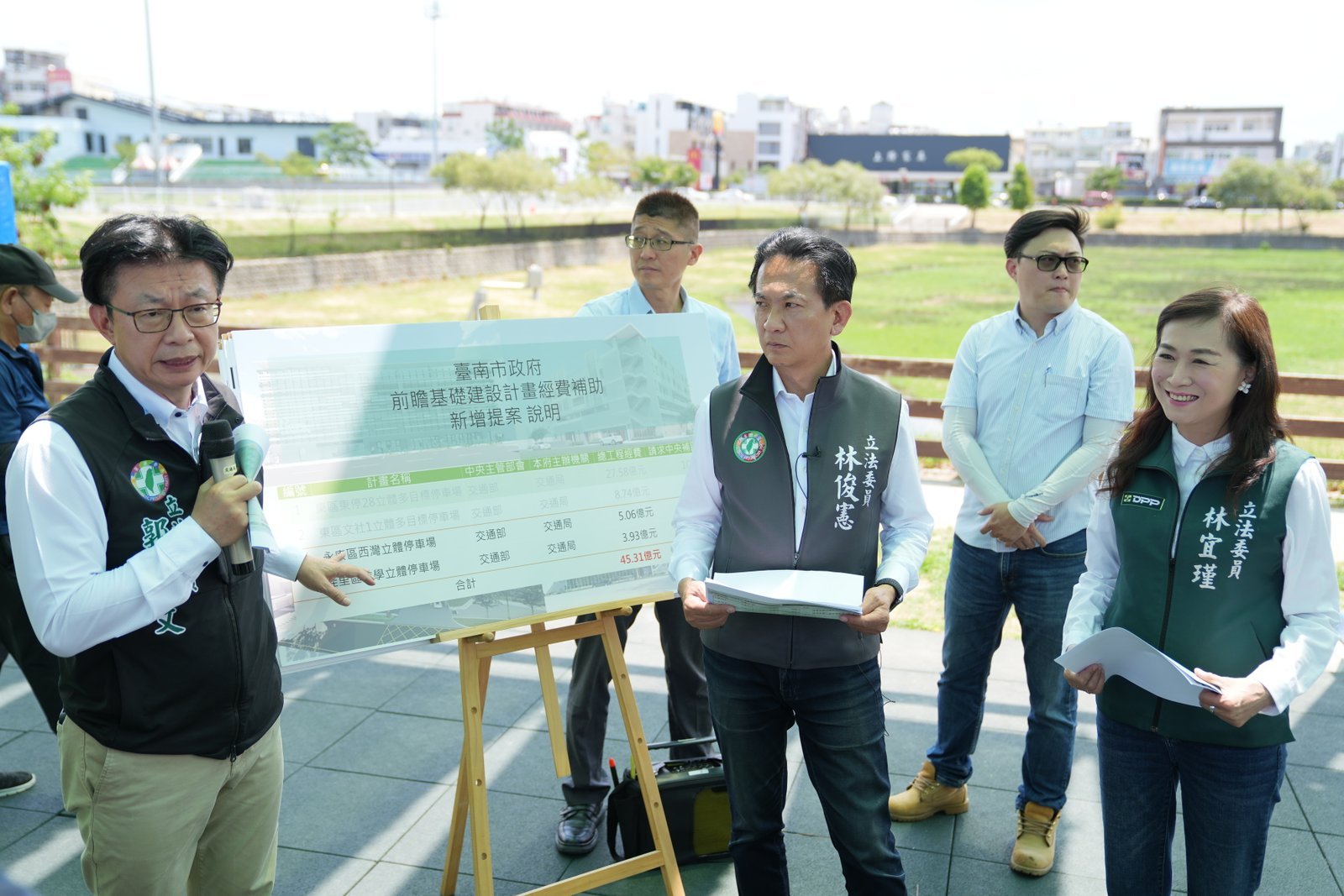 19日立法院交通委員會立委林俊憲會同交通部部長陳世凱、公路局局長陳文瑞、內政部國土署營建管理組科長林岳標、退輔會服務照顧處專門委員徐志坪等相關單位,以及立委林宜瑾、郭國文,市議員蔡筱薇、朱正軒、黃肇輝、謝舒凡、李宗霖等人,共同前往台南會勘,了解這4座停車場的規劃進度與現場狀況。