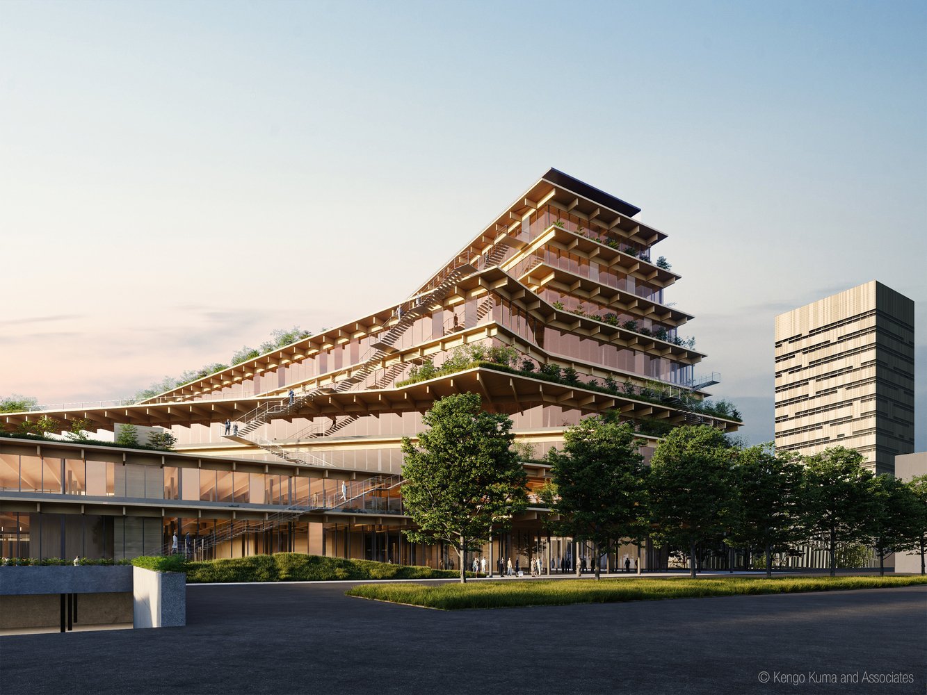 隈研吾建築都市設計事務所(KKAA)以「森林中的光影」為靈感,運用木紋鋁格柵創造立面層次,使建築與自然融為一體。隈研吾表示,希望這棟建築能讓人感受到自然的氣息與光的變化,不只是一棟房子,而是一座城市中的森林。
